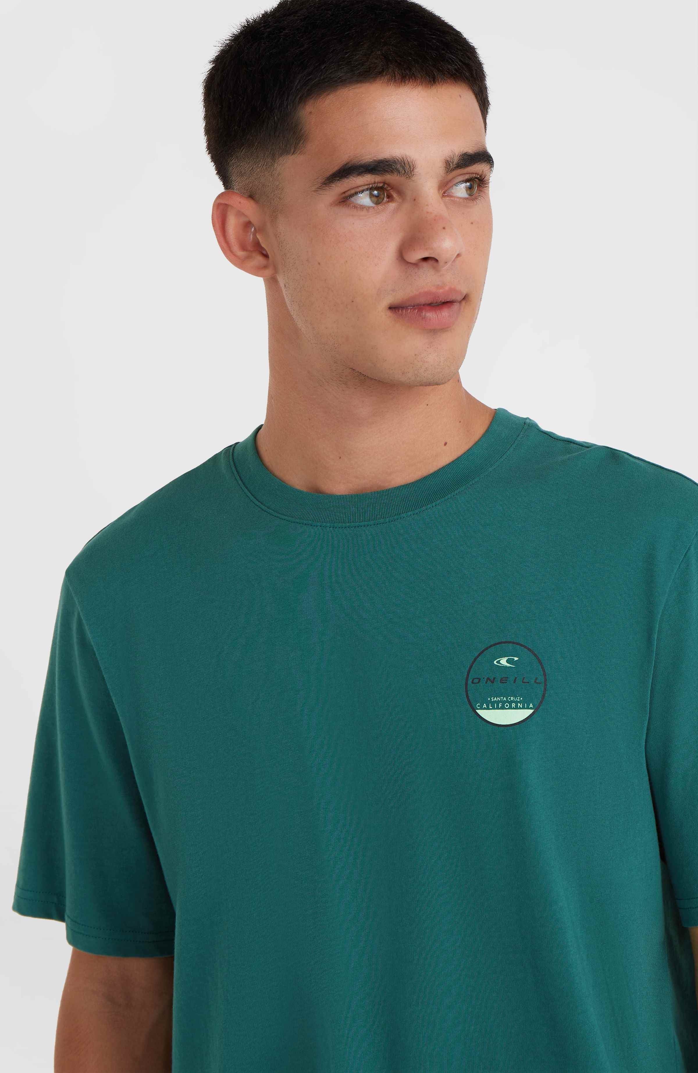 The Jack O'Neill Back Print T-Shirt offers comfort and breathability of 100% medium-weight cotton construction. This regular-fit tee features oversized artwork on the back and is a true testament to your passion for surf.
