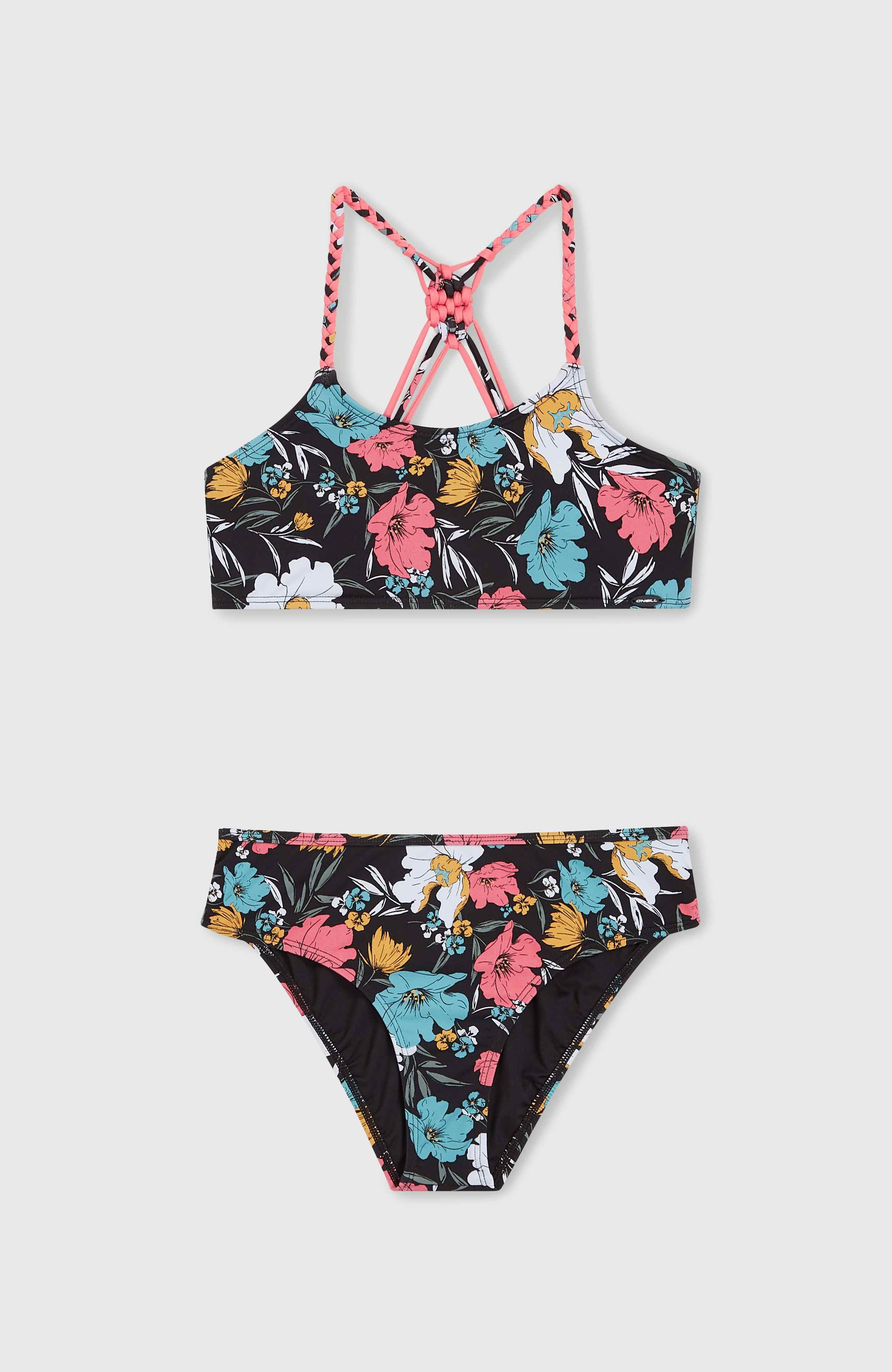 Matching a comfort-enhancing bralette top with classic bikini brief bottoms, the Mix and Match Tropics Bikini Set has crossover braided straps with crochet detail at the back. Complete with removable padding for sizes 140 and up and made with 79% REPREVE® recycled polyester, this bikini will be your little rider's go-to for all her dynamic water activities.
